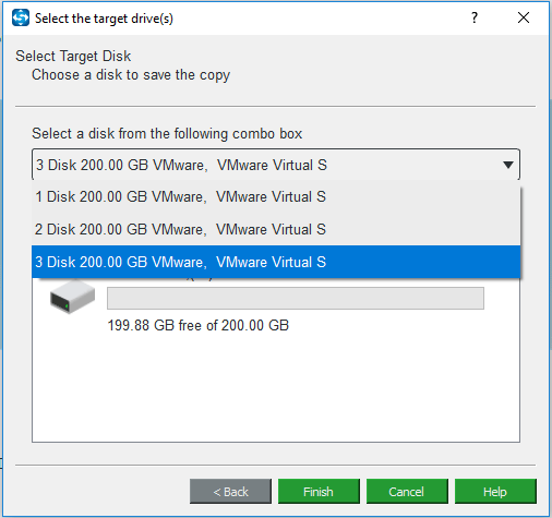 Passo 4: agora, clique em Disco de destino para escolher onde deseja salvar os dados do disco de origem.