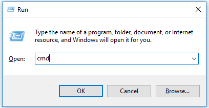 Step 1. You can press Windows + R, type cmd, and press Ctrl + Shift + Enter to open elevated Command Prompt in your Windows 10 computer.