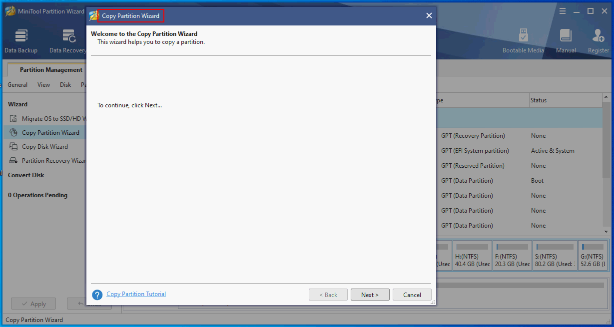 - Suivez les instructions à l’écran de l’assistant pour copier une partition ou un disque sur le disque dur externe connecté à l’étape 1.