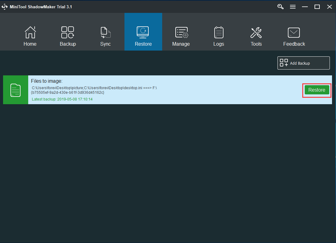 MiniTool ShadowMaker can also help you to perform some recovery solutions when some accidents happen with the backup image.