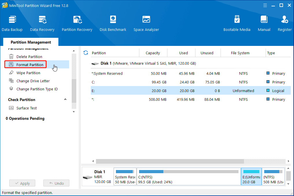Another more portable way to format the internal hard drive is using MiniTool Partition Wizard. As explained before, this tool contains many functions such as converting MBR to GPT, formatting disks, wiping partitions, and more.