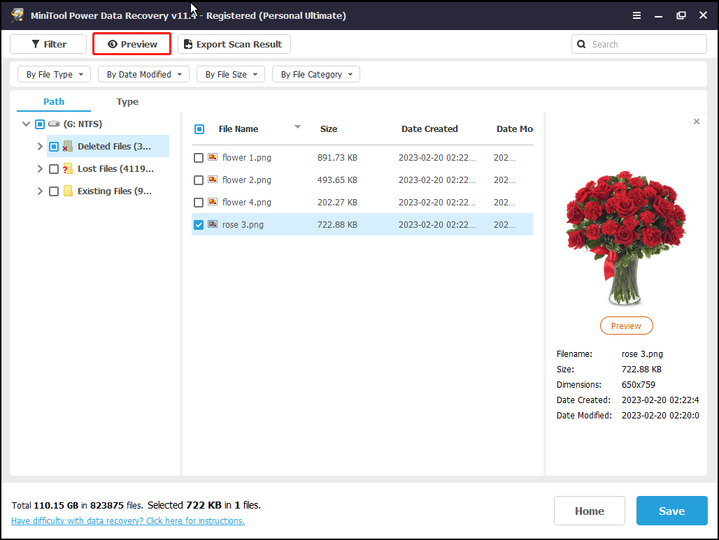 2. Before restoring listed files, you can click the Preview button to preview them first.