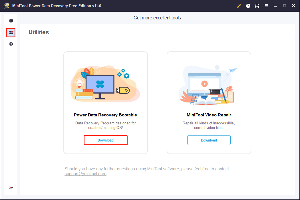 Step 2: Launch the software and shift to the Utilities interface. Click on the Download button under the Power Data Recovery Bootable section.