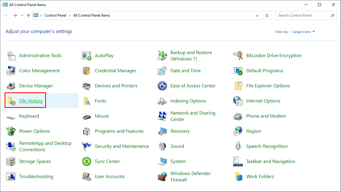 File History works as a Windows built-in backup tool. It is disabled by default; thus, you need to enable this function manually if needed. File History can back up files in the Library, including Documents, Music, Photos, Downloads, and folders stored on the Desktop. If you have enabled File History and backed up files before the virus attack, you can try to restore files with this method.