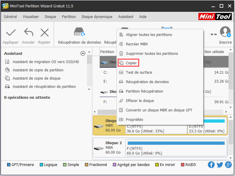 Como mencionamos acima, o MiniTool Partition Wizard é um poderoso software de clonagem de SSD, pois possui dois recursos para clonar o HD no SSD. O outro recurso permite Migrar o Sistema Operacional para SSD.