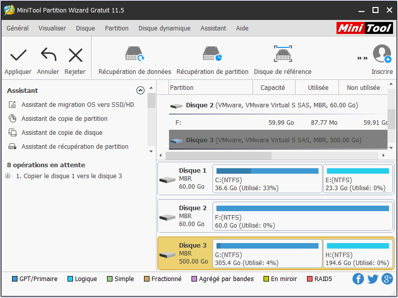 Além de clonar discos, o MiniTool Partition Wizard também possui muitos outros recursos úteis. Por exemplo, ele pode aumentar uma partição sem perda de dados, analisar o espaço em disco, converter um disco em MBR ou GPT sem perder dados pessoais, fazer reparos em partições,entre outros.