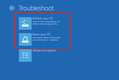 If the Windows Automatic Repair loop issue still exists, you might have to try to perform a Reset or Refresh to troubleshoot the Automatic Repair couldn’t repair your PC issue.