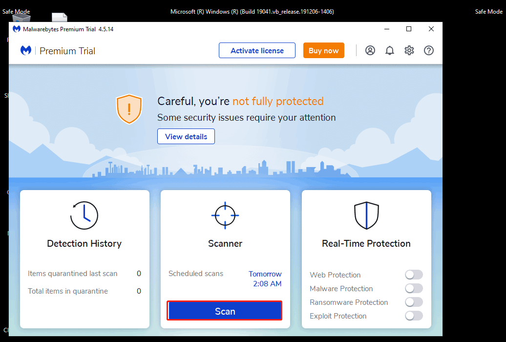 In this case, what should you do to detect the threats and remove them? It is worth trying other antivirus software like AVG, Avast, Avira, Malwarebytes, etc. Just open a browser like Microsoft Edge in Windows Safe Mode and download one antivirus program & install it to use. If it detects the malware, delete it by following the instructions provided by the antivirus program.