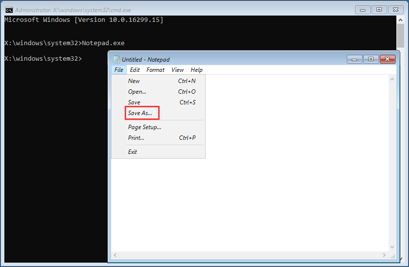 Step 3: In the CMD window, type Notepad.exe and press the Enter key to launch the Notepad application.