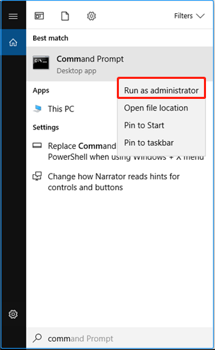 Step 1: Type Command Prompt in the Windows search box and right-click Command Prompt to select Run as administrator.