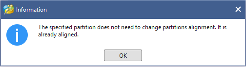 Passo 2. Em seguida, este utilitário informará se a partição selecionada está alinhada. Se ela já estiver alinhada, você receberá a seguinte mensagem: