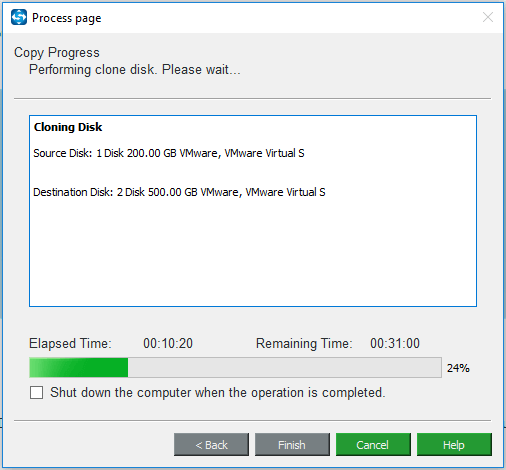 10. Then the disk clone process will begin. Please do not interrupt the disk clone process until it is finished. The costing time depends on the number of files on the source disk.