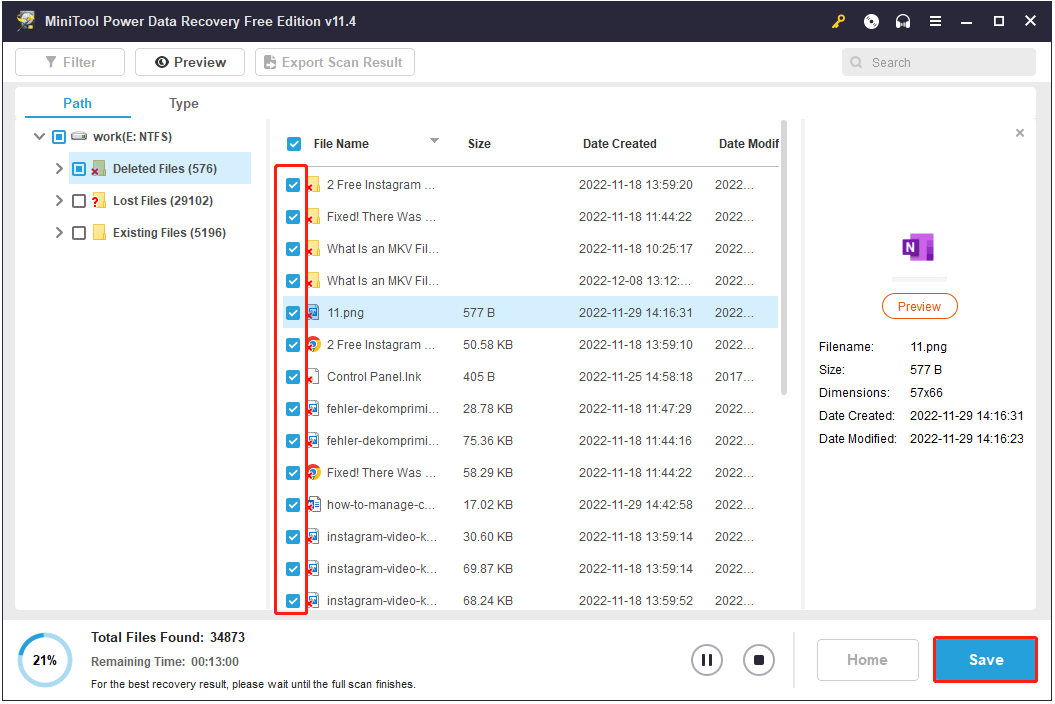 Step 2: Check all needed files, and then click the Save button to store them in a safe place.