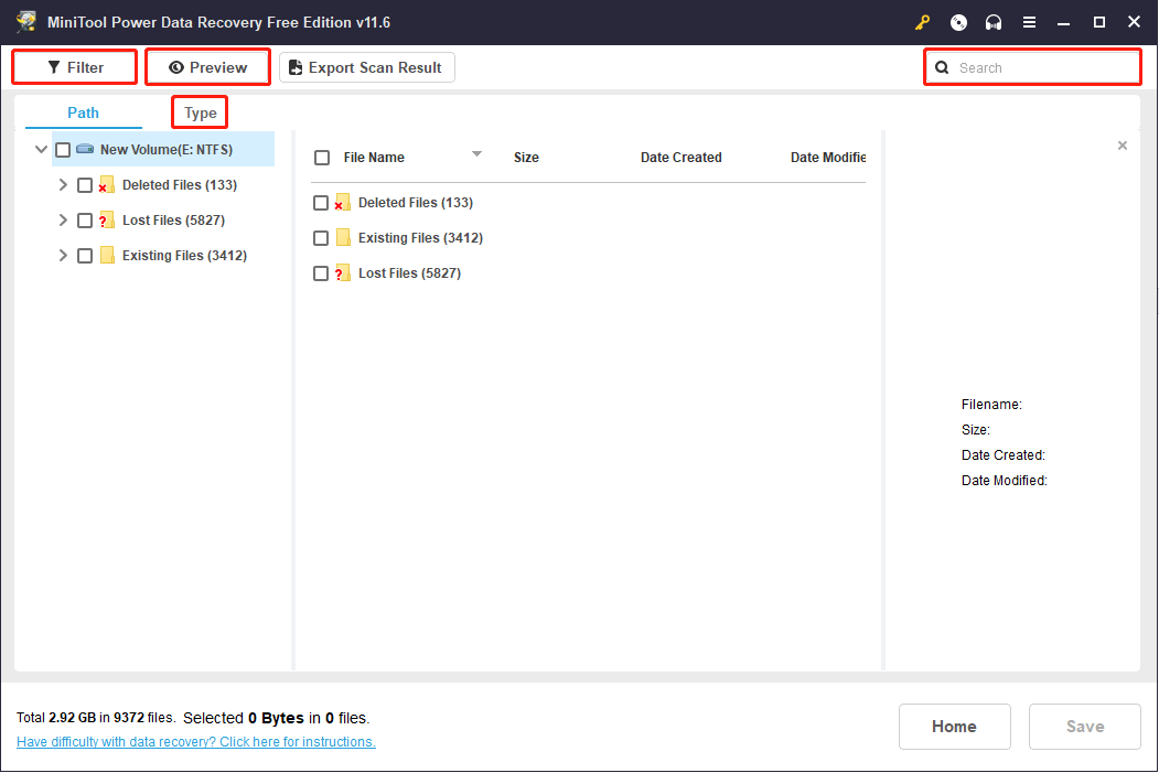 - Filter: use the file type, file category, file size, and date modified under the Filter function to filter out unrequired files.