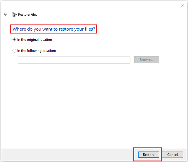 Step 7: Then choose a location to restore the file. You can choose the original location, or specify a different location and click Restore.