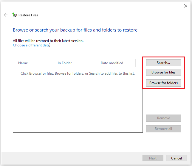 Now, we will show you the second way to select files to restore. If you have created a file backup via Windows snap-in tool – Backup and Restore (Windows 7), you can also use this tool to extract files from backup. Here is the step-by-step guide.