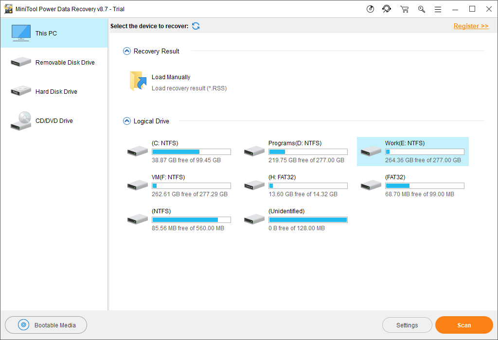 The Removable Disk Drive module of this software is specially designed to restore data from a removable drive. Additionally, This PC is also available. In this article, we will take the Removable Disk Drive module as an example.