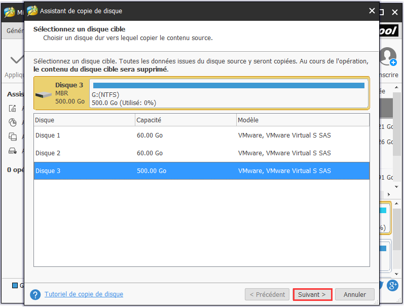 Passo 4: Escolha um disco de destino e clique em Avançar para continuar.